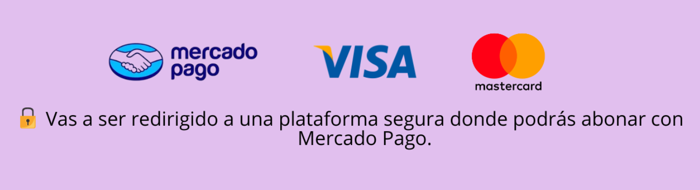 Podés abonar de forma rápida y segura a través de Mercado Pago, con tarjeta de crédito, débito, o dinero en cuenta (incluso en cuotas).