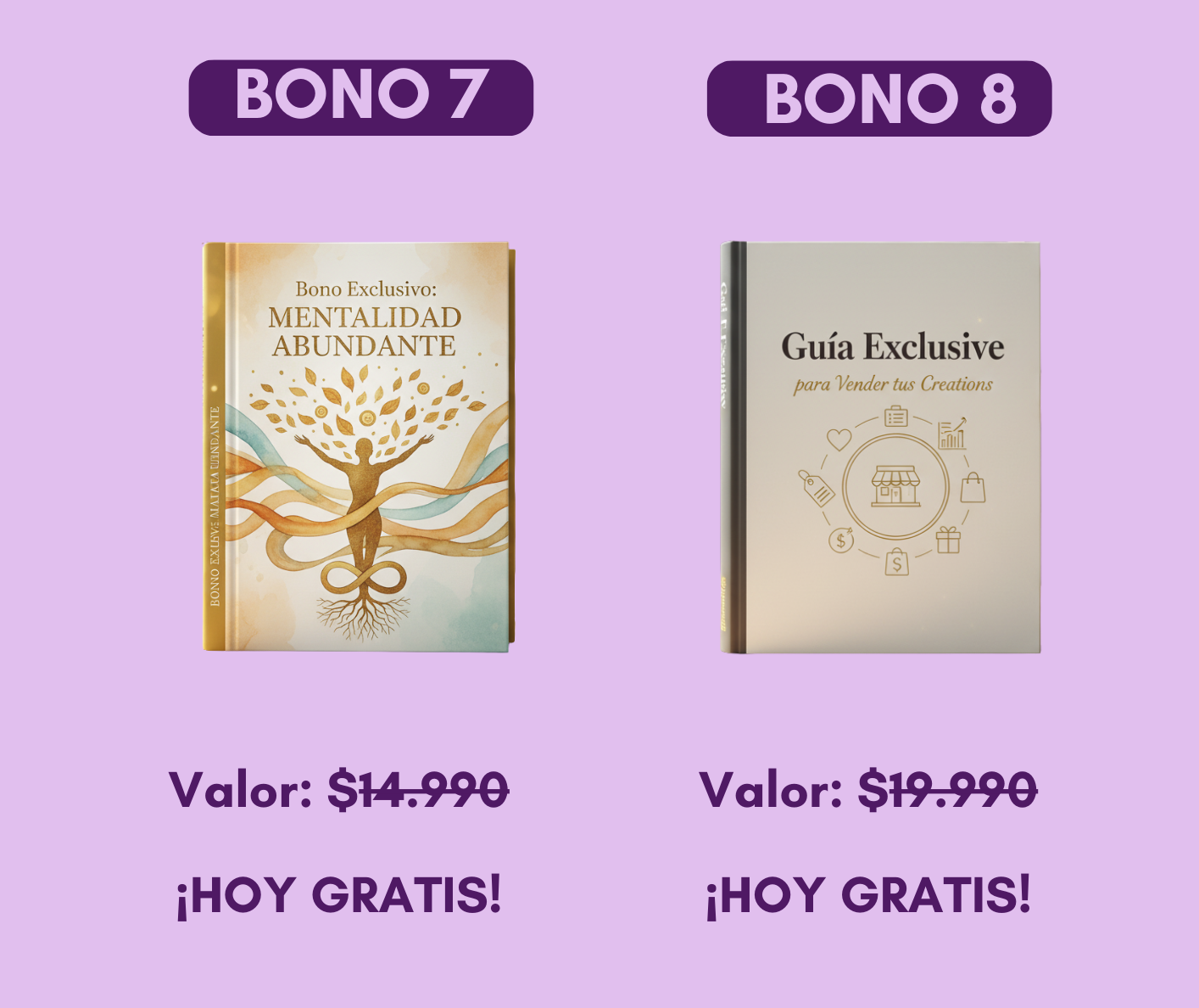 “Lo compré para aprender por mi cuenta y terminé creando mi propio mini emprendimiento. ¡Los bonos son increíbles, sobre todo el de mentalidad abundante, todo escelente!!!!”